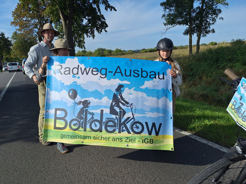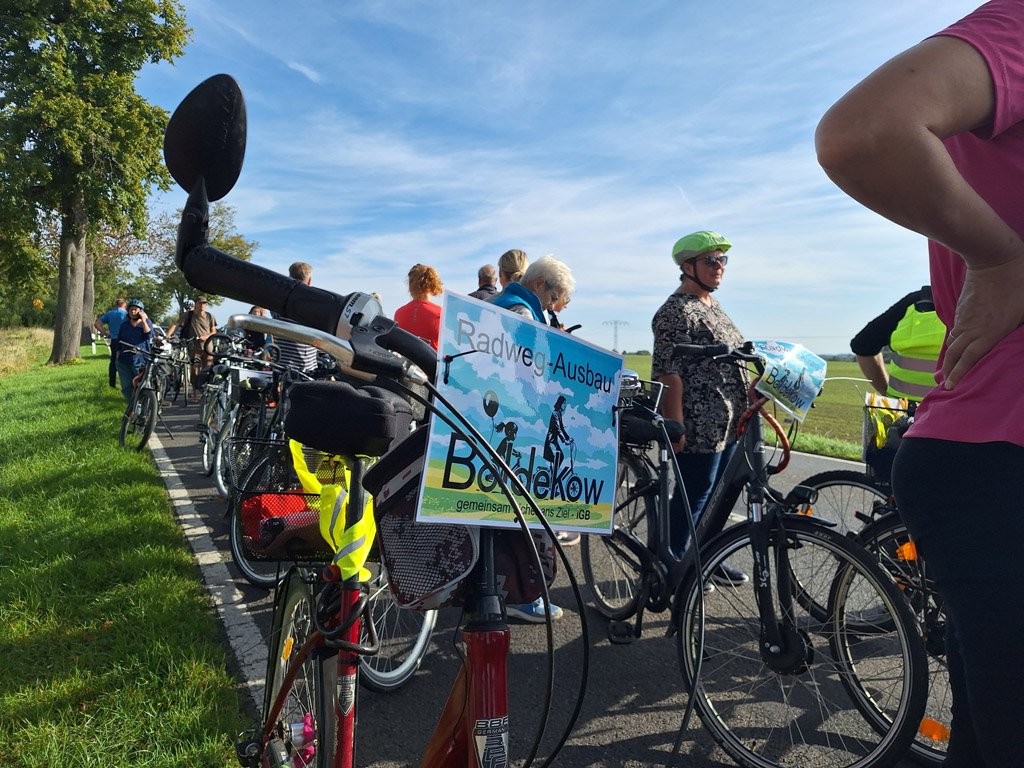 Am 20. September beteiligten sich ca. 40 Personen an der Fahrraddemonstration von Boldekow nach Kavelpass. Die Polizei hatte den Demonstrationszug begleitet. Die Interessengemeinschaft Boldekow wollte mit der Aktion auf die lebensgefährliche Situation für Radfahrer und Radfahrerinnen auf der Bundesstraße 197 zwischen Kavelpass bis Boldekow und weiter bis zum Kiessee hinter Sarnow aufmerksam machen. Auf dieser Teilstrecke fehlt der dringend notwendige Radfahrweg. Im Anschluss an die Demonstration fuhren die Radler weiter bis Schwichtenberg und besuchten dort das Kartoffelfest. Zurück ging es nach Putzar, wo sich die Gruppe auflöste. Die Interessengemeinschaft Boldekow ist fest entschlossen, weitere Fahrraddemonstrationen durchzuführen, bis der Fahrradweg endlich gebaut ist. Lesen Sie hier einen Beitrag von Anne-Marie Pankratz im Nordkurier vom 22.09.2025.